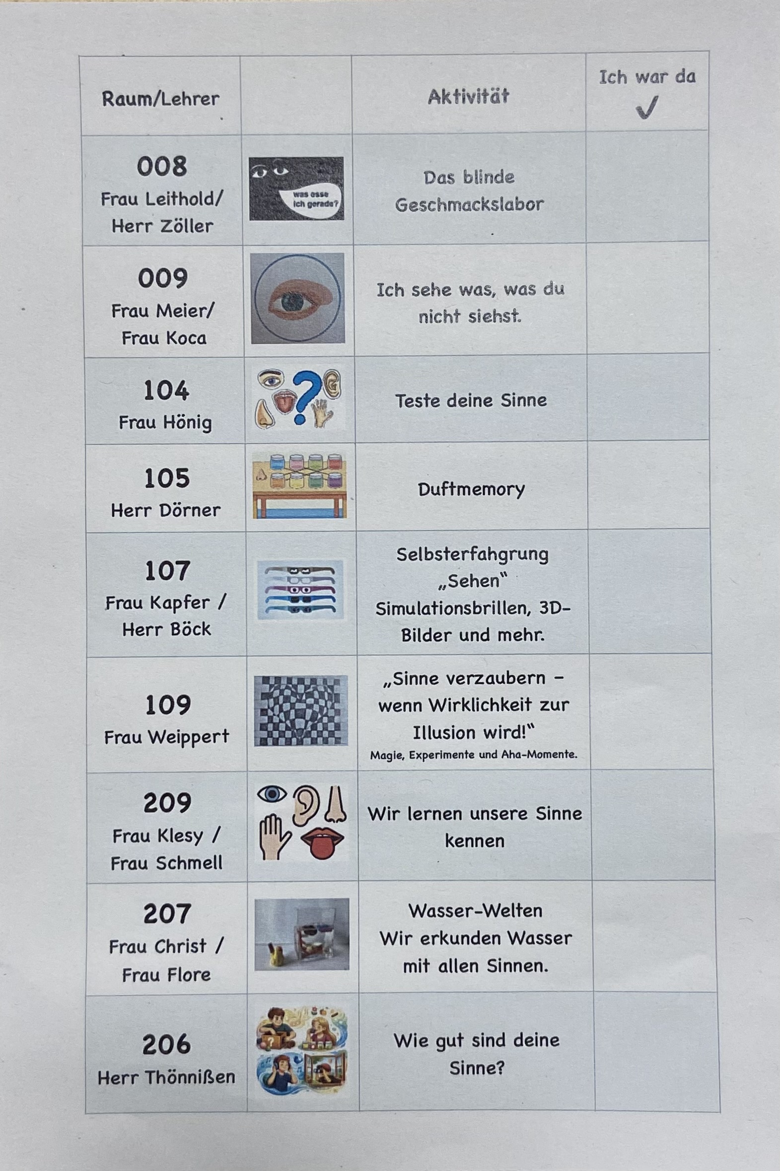 Danach konnten sich Eltern Schüler und viele ehemalige Schülerinnen und Schüler, sowie alle anderen Gäste im Schulgebäude über die Arbeit in der Projektwoche informieren. Viele spannende Mitmach-Aktionen in den Klassen entführten in die vielfältige Welt der Sinne.