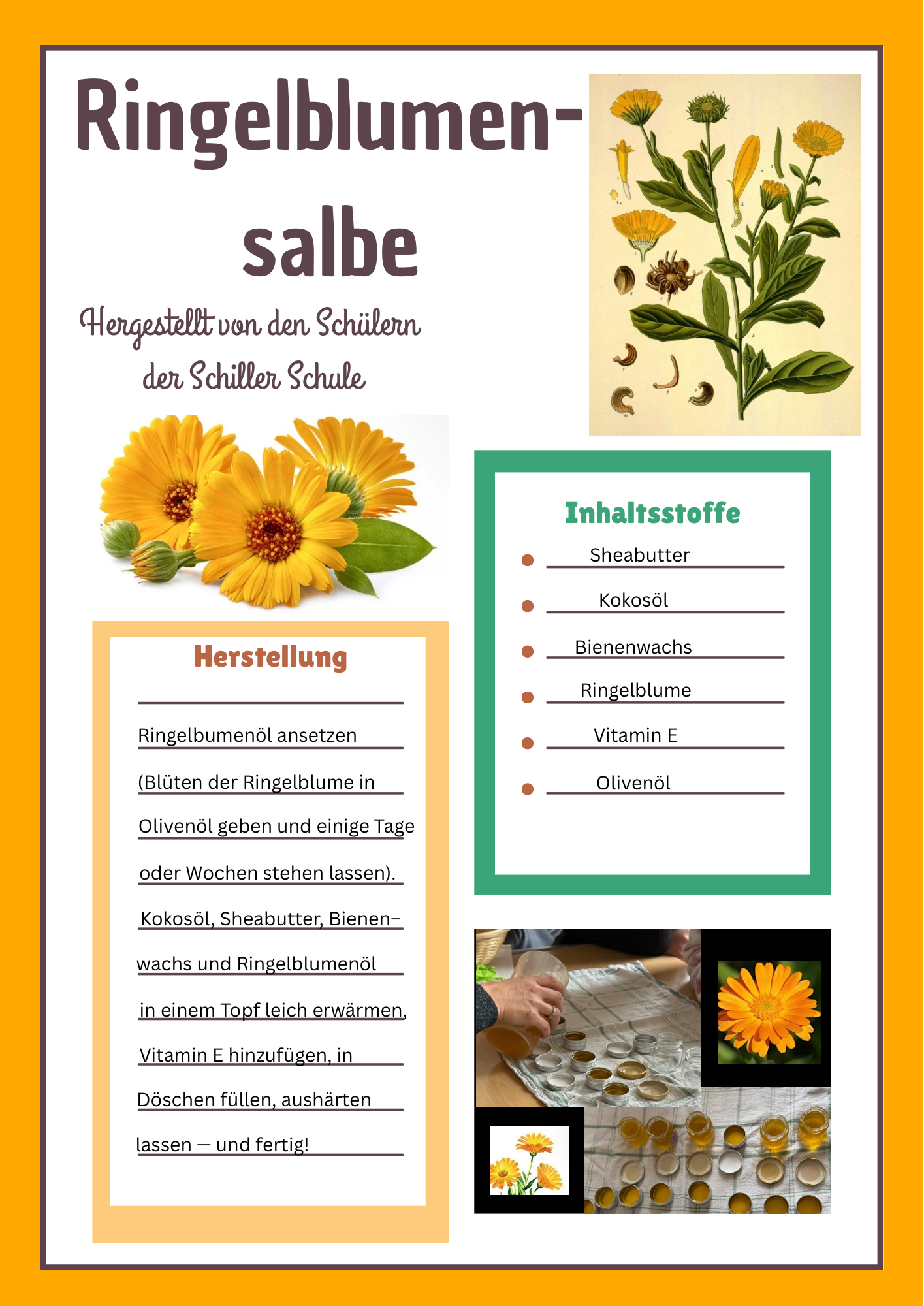 Zum Schluss durfte jedes Kind ein eigenes Glas Ringelblumensalbe mit nach Hause nehmen. Die Freude war groß, denn alle hatten etwas ganz Besonderes selbst hergestellt – und ganz nebenbei viel über die Kraft der Pflanzen gelernt. 🌿 (SLei)