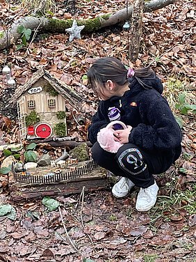 Mit jeder Menge Entdeckergeist machte sich die Waldpiraten-AG auf den Weg ins Flürchen, um den geheimnisvollen Wichtelwanderweg zu erkunden. Gleich zu Beginn wurden die Piraten von den kleinen Spuren der Wichtel überrascht – winzige Türen, große und kleine Häuschen und sogar eine Wichtelsauna wurden entdeckt.