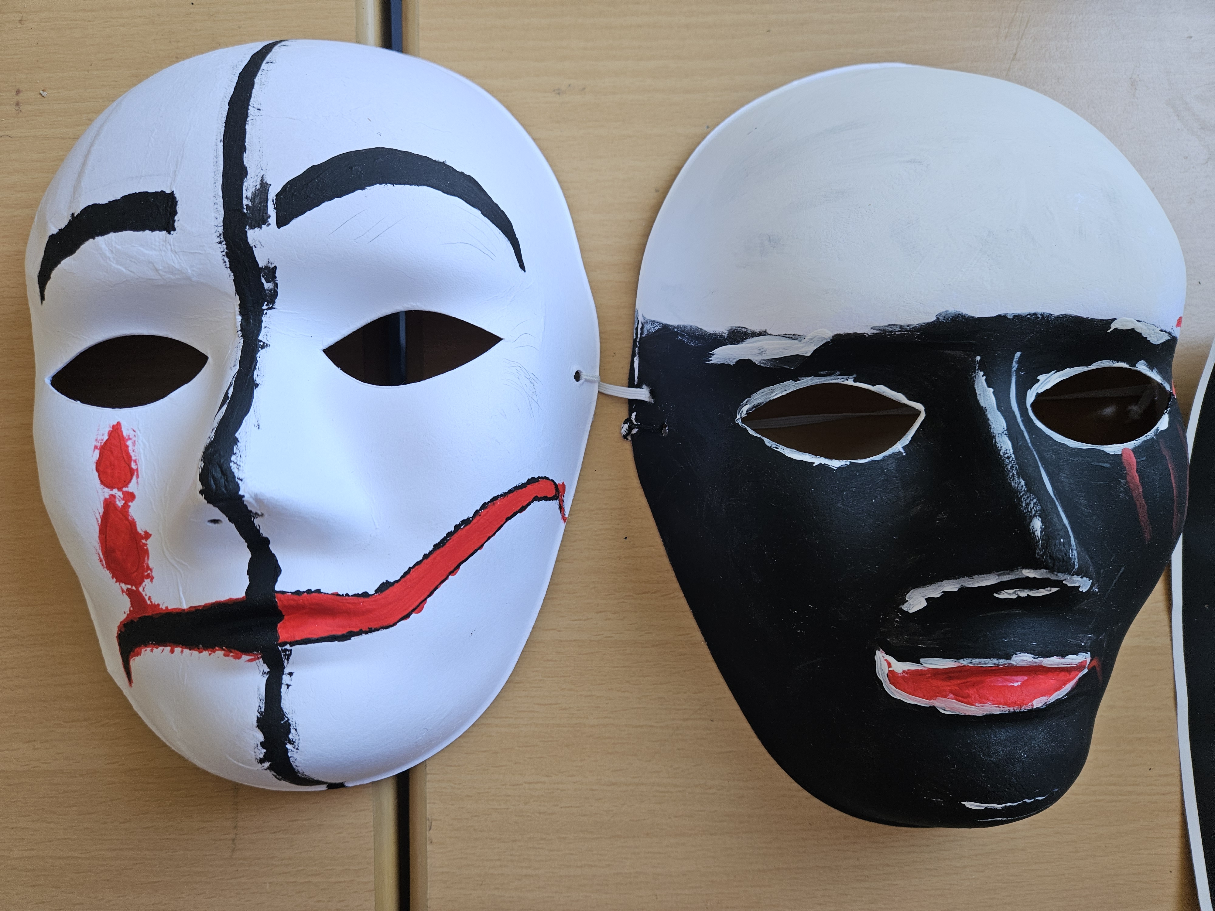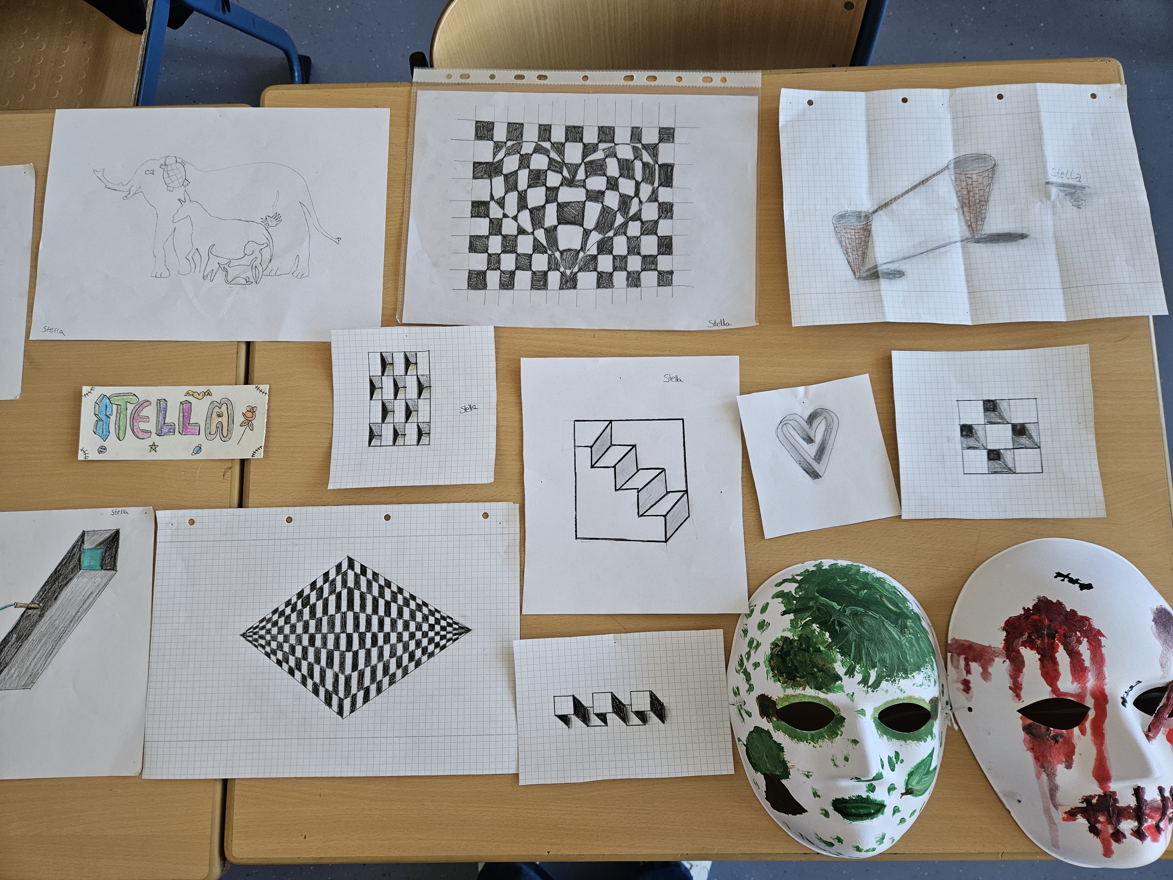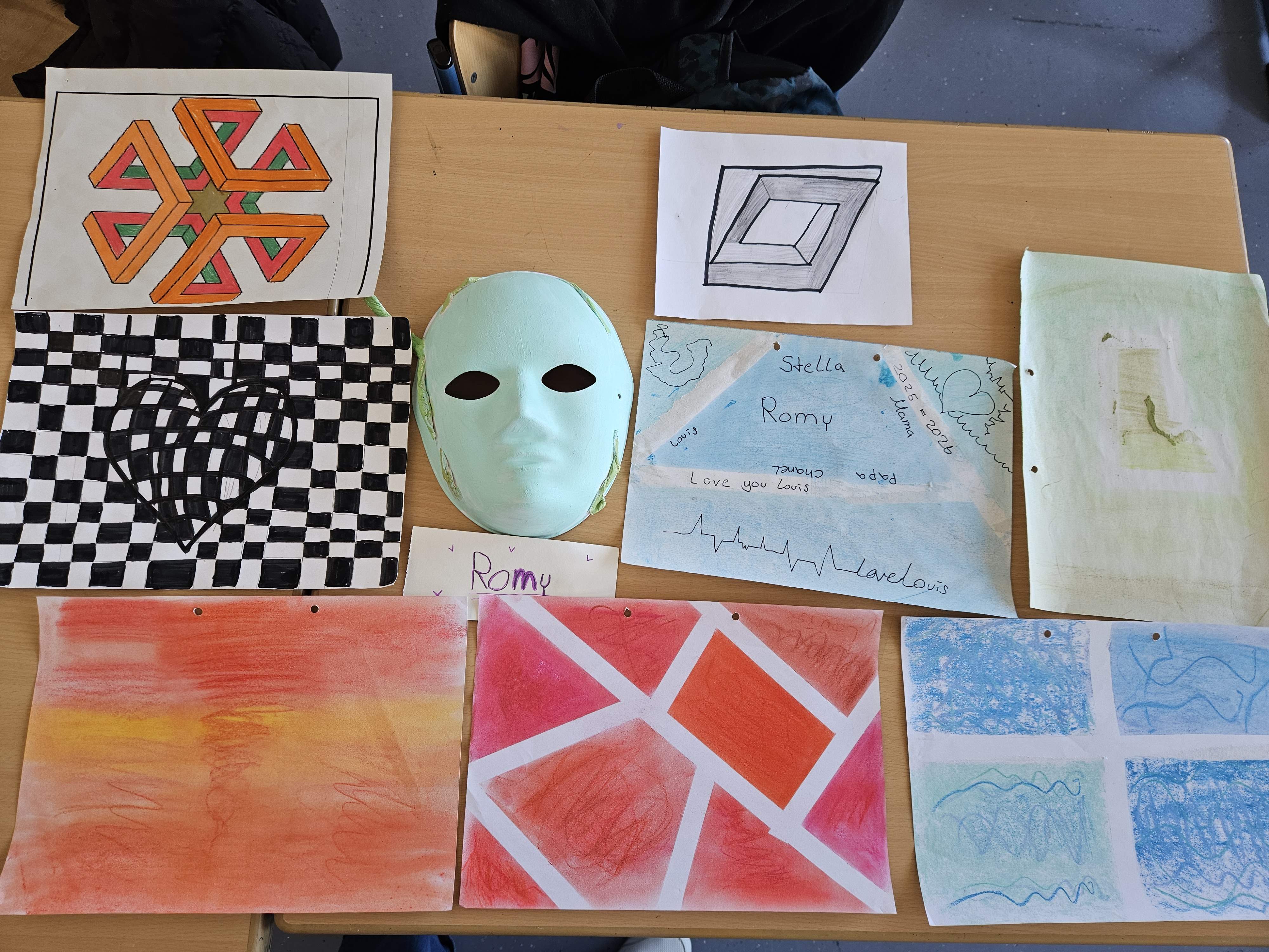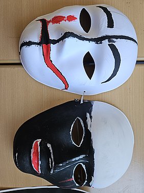 Zum Projektabschluss präsentierten die Jugendlichen ihre gestalterischen Arbeiten. Dabei entstanden individuelle Kunstbilder und Masken, die persönliche Auseinandersetzungen und Entwicklungsprozesse sichtbar machen.